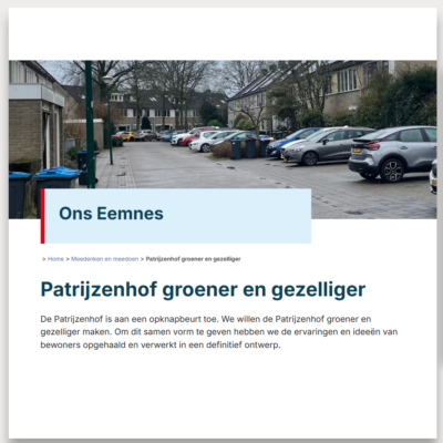 Van wijkontwikkeling tot herinrichting van publieke ruimte, altijd met herleidbare keuzes en duidelijke terugkoppeling.